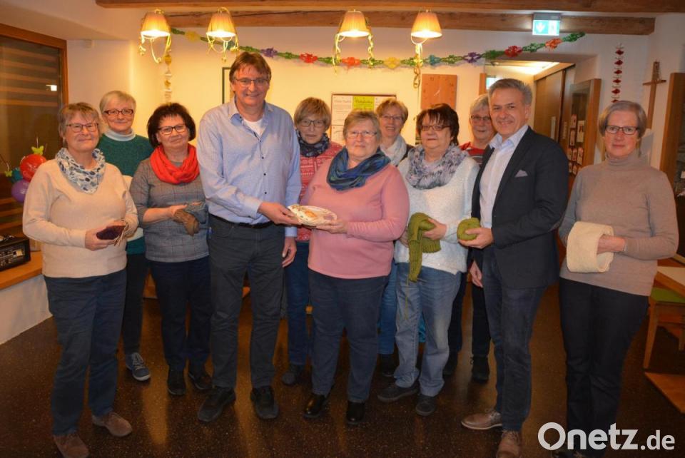 Bürgermeister und Lebenshilfe-Vorsitzender Roland Grillmeier freute sich ebenfalls über die Spende und dankte den Damen für ihren außergewöhnlichen Dienst. Sie erfuhren auch, dass er als Kind früher sogar selbst gerne gestrickt habe.