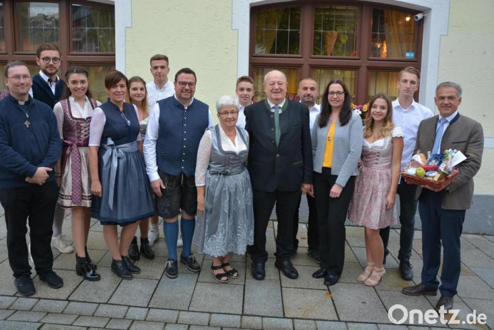 Die Glückwünsche der Stadt überbrachte Bürgermeister Roland Grillmeier, der einen Korb mit regionalen Spezialitäten aus dem Landkreis überreichte. „Haltet weiter zam“, sagte der Bürgermeister zum Jubelpaar.