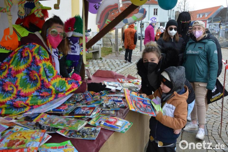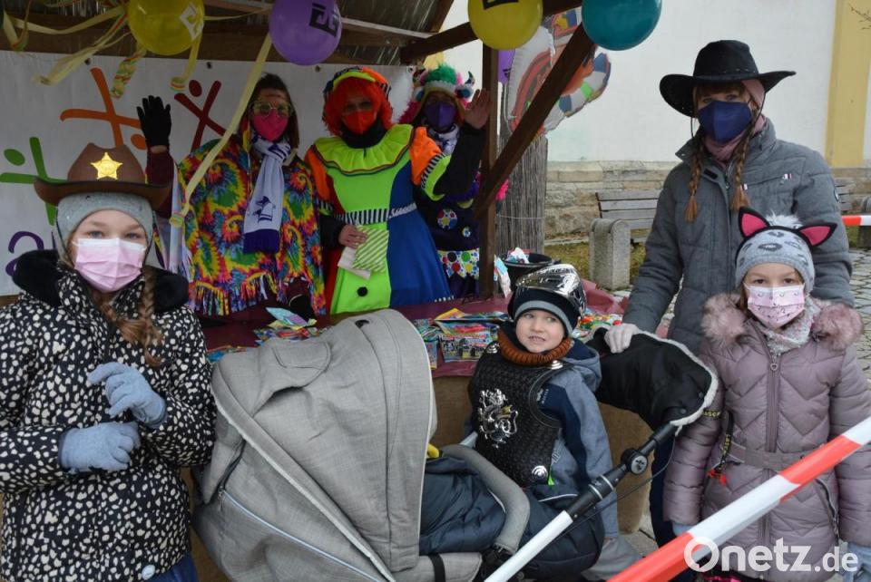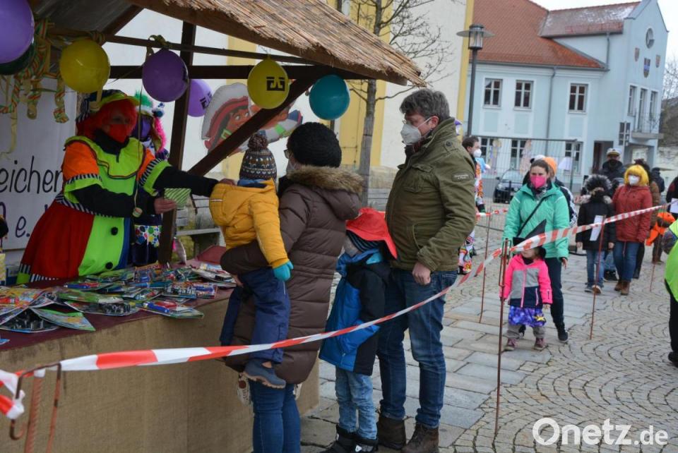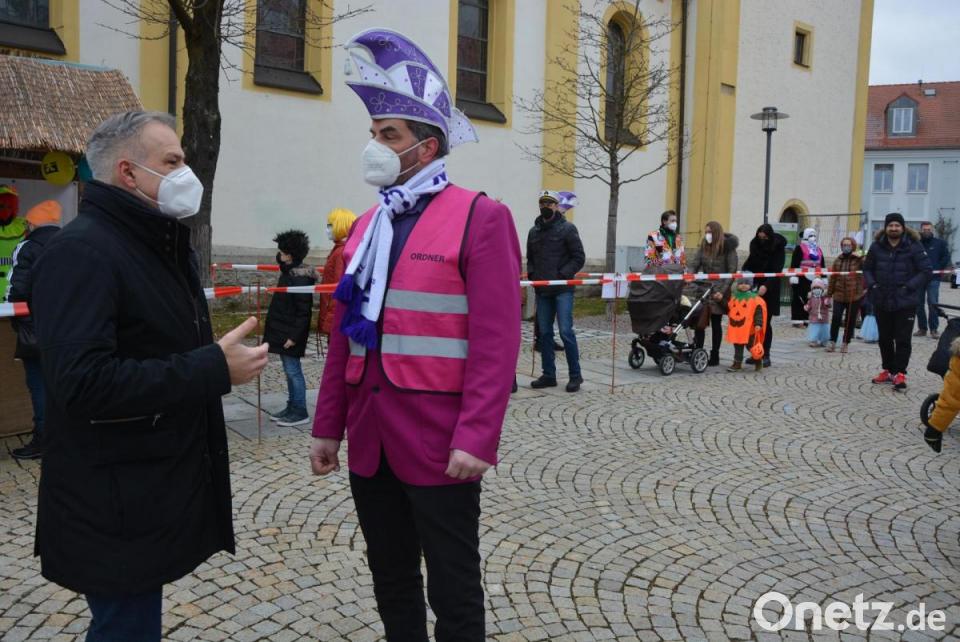 Zintl dankte im Gespräch mit Oberpfalz-Medien dem Bund Deutscher Karneval, dass dieser wegen des Kriegs in der Ukraine den Großteil der närrischen Veranstaltungen abgesagt hatte. "Wir machen hier keine Party-Veranstaltung, sondern wollen den Familien und Kindern eine kleine Freude bereiten", sagte Zintl. Vom "Gaudiwurm" waren rund 20 Personen im 90-minütigen Einsatz, zur Ausgabe der Überraschungstüten und zur Absperrung und Kontrolle der Gesichtsmasken. Nach Annahme der kleinen Überraschungen verließen die meisten Familien wieder den Ort des Geschehens.
