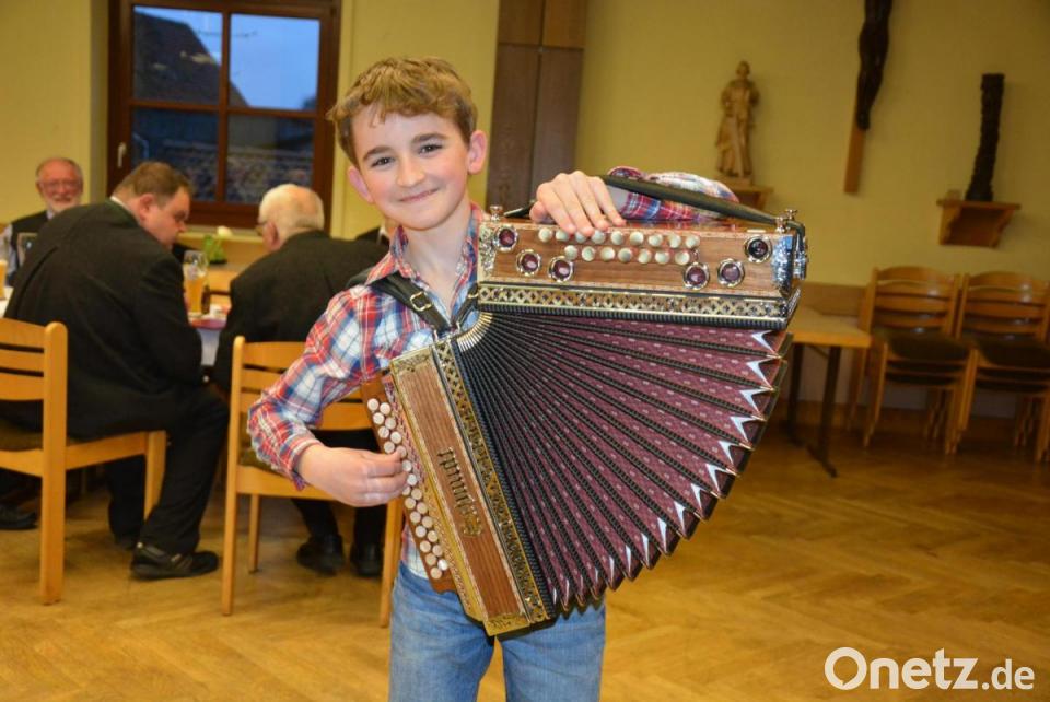 Zum anschließenden Festabend im Jugendheim begrüßte Vorsitzender Johann Gruber auch Diözesanvorsitzenden Martin König sowie die Tirschenreuther Bezirksvorsitzende Martina Mark. Für die passende Musik sorgte der zwölfjährige Max Haberkorn auf seiner Steirischen. Laut Gruber zählt die Kolpingsfamilie Mitterteich aktuell 38 Mitglieder. Zum Festtag waren zwölf Kolpingsfamilien aus der gesamten Region gekommen. Bürgermeister Stefan Grillmeier sprach von einer wichtige Rolle, die Kolping in der Pfarrei und in der Stadt spiele. "Kolping wurde vor 120 Jahren in Mitterteich gegründet, 47 Gründungsmitglieder traten damals der Gemeinschaft bei", wusste der Bürgermeister. "Sie alle hatten die Ziele des Gründers Adolf Kolping immer im Auge." Abschließender Dank galt für die Unterstützung bei vielen kirchlichen und weltlichen Veranstaltungen in der Stadt. Gemeinsam dankten die Ehrengäste den treuen Mitgliedern. 60 Jahre bei Kolping Mitterteich sind Ernst Zeitler und Heinz Richter, 65 Jahre dabei ist Engelbert Ott. Zu neuen Ehrenmitgliedern wurden die jahrzehntelang aktive Kassiererin Andrea Neukirchen und der frühere Vorsitzende Erhard Sommer ernannt. Beide erhielten eine Ehrenmedaille von Kolping Deutschland. Kaplan Schmid würdigte die Geehrten: "Sie haben Kolping ein Gesicht gegeben." Beendet wurde der Festakt mit einem Rückblick von Kaplan Schmid auf 120 Jahre Kolpingsfamilie in Mitterteich.