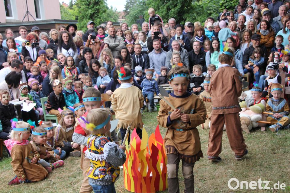Mitterteich. (kro) Die kleinen Jungen und Mädchen gingen in diesem Jahr auf Entdeckungsreise und lernten dabei ferner Länder und deren Einwohner kennen. Alle Kinder waren bei den Aufführungen mit großem Feuereifer bei der Sache. Elternbeiratsvorsitzende Carolin Friedl freute sich, zum Sommerfest auch Bürgermeister Roland Grillmeier, Leonbergs Bürgermeister Hans Burger, Stadtpfarrer Anton Witt, Pfarrer Martin Schlenk und Kaplan Florian Weindler begrüßen zu können. In seinem Grußwort dankte Bürgermeister Roland Grillmeier dem Kinderhaus für seine Arbeit und hob zudem hervor, dass auch zwei männliche Erzieher im Kinderhaus arbeiten. Nach den Aufführungen der Kinder lud das Kinderhaus zum Sommerfest ein, dazu spielte die Mitterteicher Stadtkapelle auf. Für die Kinder gab es verschiedene Spiele und Aktionen wie Schminken, Tattoos oder Wettspiele.
