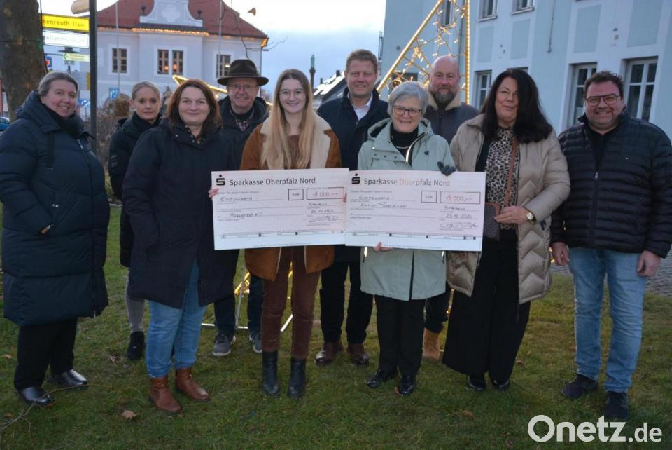 Jetzt erhielten die Aktion "Feuerkinder" und der Verein "Happynest" jeweils 1000 Euro überreicht – mit der Bitte, dieses Geld in ihrem Anliegen zu verwenden. Stefan Grillmeier berichtete von vielen Gesprächen, in denen Bewunderung für die neue Weihnachtsbeleuchtung geäußert worden sei.
