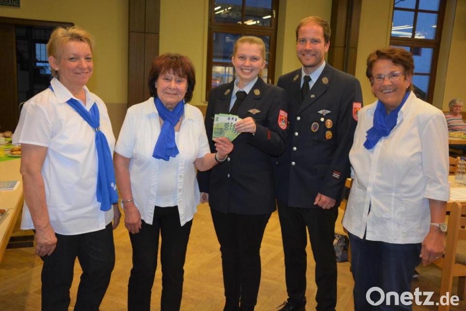 Nach dem Gemeinschaftslied „Wahre Freundschaft soll nicht wanken“ überreichte der Frauenbund eine Spende von 500 Euro an die neu gegründete Kinderfeuerwehr „Feuerfunken“. Vorsitzender Christian Grillmeier und Lena Nemsow von der Kindergruppe freuten sich über den Zuschuss, der den Start des Nachwuchses bei der Feuerwehr erleichtern soll.