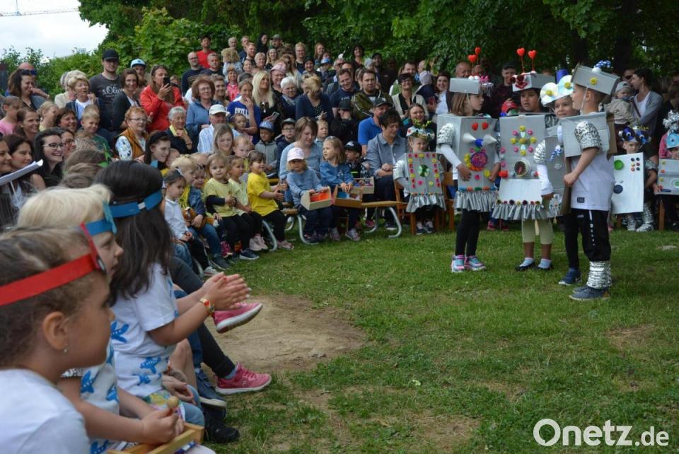 Das Wetter meinte es gut mit dem Städtischen Kindergarten „Die kleinen Hankerler“. Erstmals nach dreijähriger Pause fand am Samstagnachmittag wieder ein Sommerfest statt, der Besuch war überwältigend. Kinderhausleiterin Susi Fellner und ihr 28-köpfiges Team freuten sich über ein volles Haus in der Gartenanlage des Kinderhauses. Dabei lieferten die 160 Kinder ein gut einstündiges Programm. „Mit ungläubigem Staunen begrüße ich eine große Menschenmenge“, sagte Elternbeiratsvorsitzender Roland Lindner, der vor allem dem Kindergartenteam für die enormen Vorbereitungen dankte. „Die Kinder sind uns das Wichtigste, mit euch ist alles schöner“, dankte Lindner für die mehrwöchigen Vorbereitungen für das Fest.