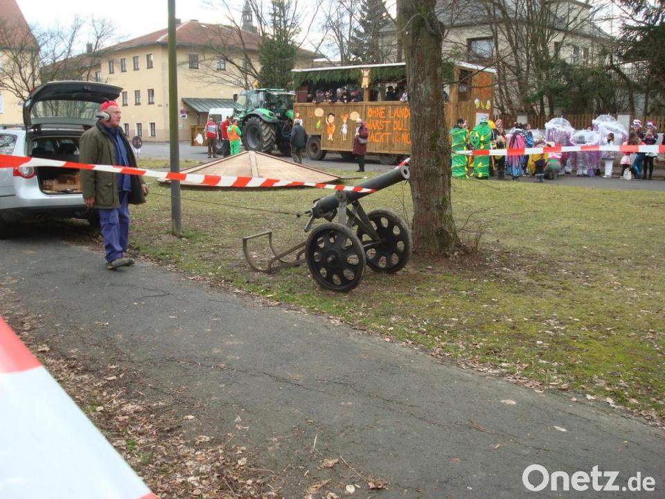 Alois Wurm ist derzeit der einzige, der weiß, wie man die Salutkanone bedient und der berechtigt ist, mit der Salutkanone zu schießen. Das "Höllengerät" gehört der Stadt Mitterteich und ist im Bauhof sicher untergebracht. Seit etwa 1950 ist diese Kanone in Betrieb. Das Vorgängermodell steht noch im Bauhof, weiß Wurm. "Sie hat keine Betriebsgenehmigung mehr erhalten und ist ausgemustert", erzählt der Kanonier. Nur zu besonderen Anlässen wird die "Neue" eingesetzt. Der Faschingsumzug war so eine Gelegenheit. Mehrere Kanonendonner aus dem 50 Jahre alten Gerät verkündeten um 13.31 Uhr, dass der Gaudiwurm startet. Ergänzt wurde der Kanonendonner von den Böllerschützen der Königlich-privilegierten Schützengesellschaft Waldsassen. Es krachte praktisch an allen Ecken in der Stadt.
