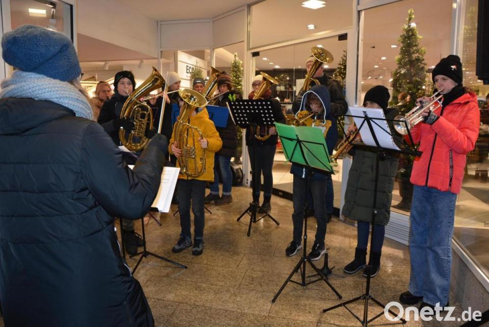 Ganz schön was los war am Freitagabend am Unteren Markt. Vor dem Modehaus Zeitler fand die letzte Veranstaltung der Reihe Adventsschaufenster des Gewerbefördervereins statt – und erneut kamen zahlreiche Besucher, um weihnachtlichen Liedern zu lauschen und Schmankerl zu genießen. Die Jugendstadtkapelle unter der Leitung von Laura Sollfrank spielte Klassiker wie etwa „Alle Jahre wieder“, „Ihr Kinderlein, kommet“ und „In der Weihnachtsbäckerei“. Angeboten wurden in aufgebauten Buden Gegrilltes, Fischsemmeln und Apfelpunsch. Vor Ort war auch Christkind Anna-Lena Grillmeier, das süße Überraschungen an die Kinder verteilte.