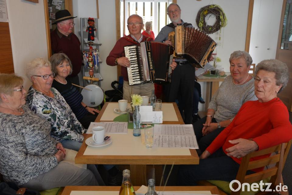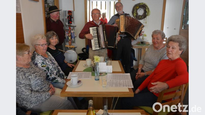 Für unterhaltsame Stunden sorgten Mitglieder des Singkreises "Vetter Hannes" im Mehrgenerationenhaus. Die Musiker um Leiterin Helene Rothenberger-Zeitler (sitzend, Dritte von links) hatten Marienlieder sowie Stücke rund um den Mai dabei. Zu hören waren etwa "Wenn alle Brünnlein fließen" und "Im Märzen der Bauer". Die Besucher sangen zum Teil eifrig mit und genossen Kaffee und Kuchen. Bild: jr