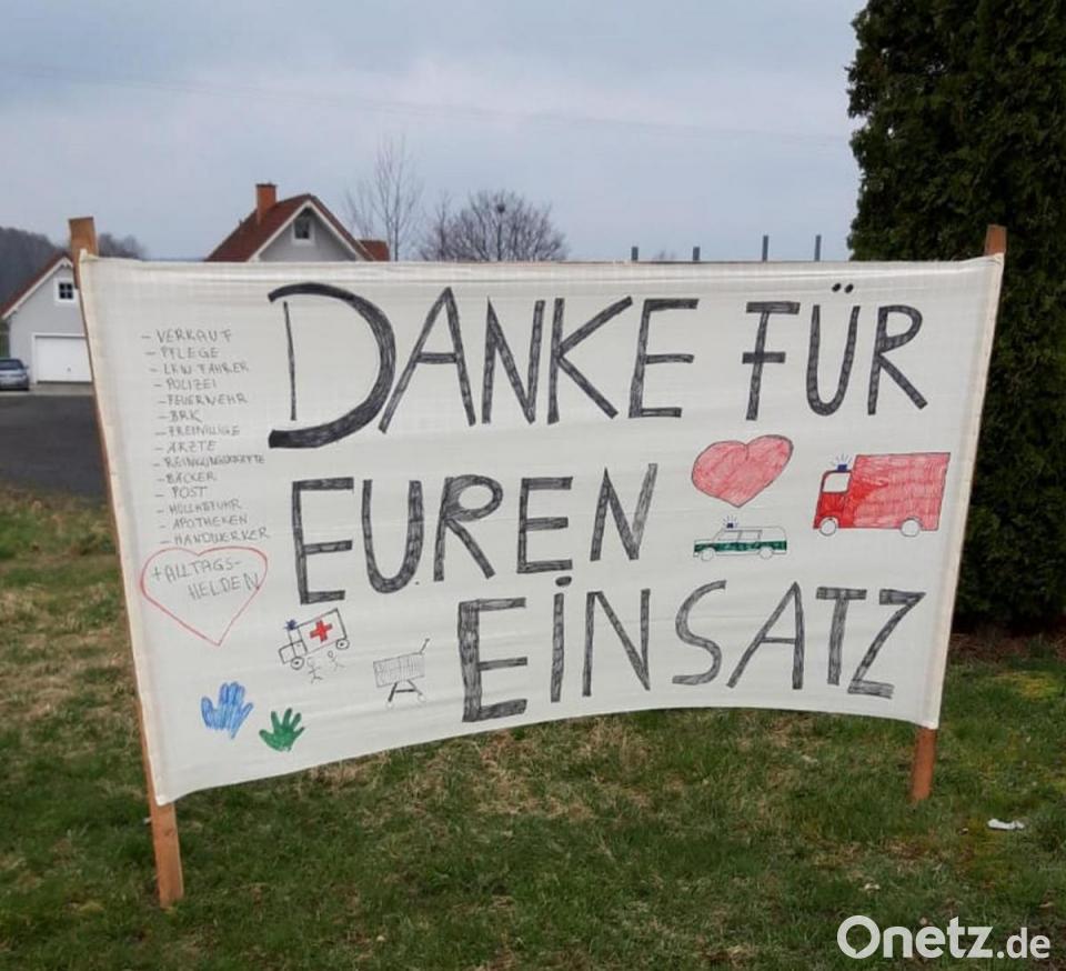 Gestaltet und aufgestellt haben das Banner Sven Müller, seine Freundin Alexandra Bleistein und ihre gemeinsamen Kinder Maximilian (8) und Sebastian (4), die in unmittelbarer Nähe wohnen und daher auch von der Ausgangssperre betroffen sind. "Mitterteich ist leider im negativen Sinne zur berühmten Stadt geworden", bedauert Müller auf Nachfrage von Oberpfalz-Medien und betont: "Wir wollten ein positives Zeichen setzen und den eigentlichen Helden der Situation danken." Die Kinder seien mit Begeisterung bei der Aktion dabei gewesen, so Müller.