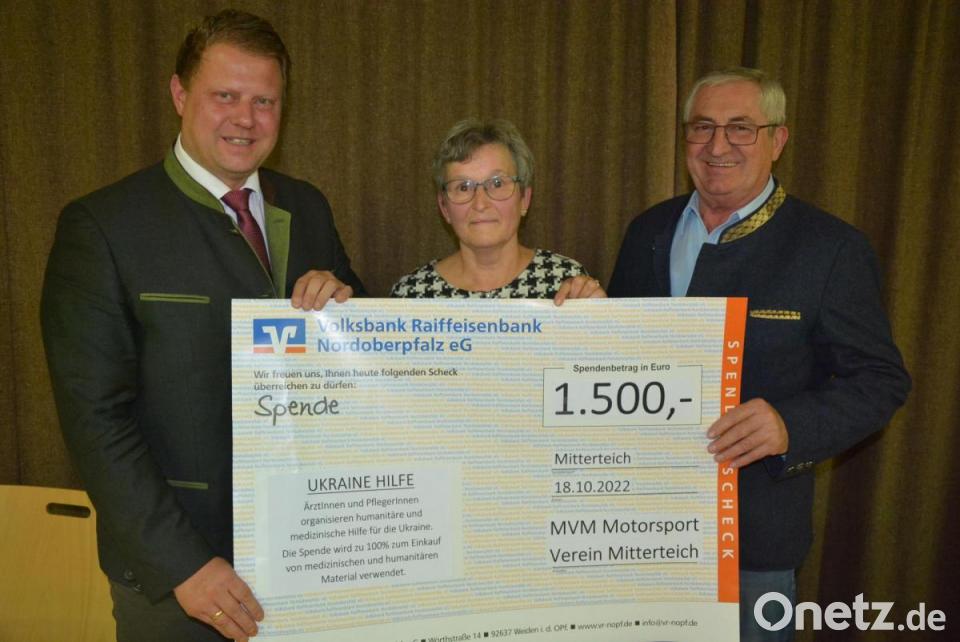 Mit einer Spende von 1500 Euro unterstützt der Motorsportverein Mitterteich (MVM) hilfsbedürftige Menschen in der Ukraine, die unter den Folgen des Krieges leiden. Vorsitzender Josef Schuller und Kassierin Christine Greger überreichten die Spende an Bürgermeister Stefan Grillmeier, der sie weiterleiten wird.