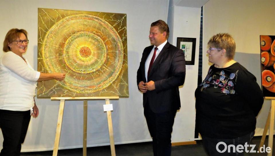 "Heute könnte man sagen: Die Industriestadt Mitterteich grüßt die Hochschulstadt Tirschenreuth", bemerkte Bürgermeister Stefan Grillmeier in Anspielung auf den Heimatort der Künstlerinnen. Der Kunst sprach er eine große Bedeutung in der demokratischen Gesellschaft zu. "Sie haben im Ausstellungsraum einen Spannungsbogen aus Farben aufgebaut gegen das Grau in Grau der Pandemie", sagte Grillmeier weiter.