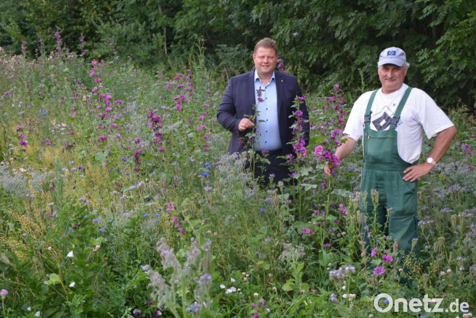 Mit Hilfe eines Landwirts, der den Blütenreichtum angesät hat, darf sich die Stadt jetzt über ein weiteres Blütenmeer freuen. „Dies ist ein Paradies für Insekten und Schmetterlinge“, sagte Kilian über die Fläche, an deren unteren Rand der Seibertsbach ruhig vorbeifließt.