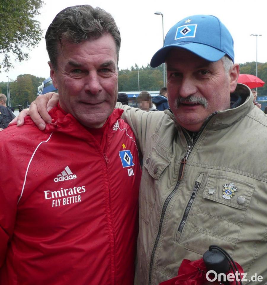 Begleitet von seiner Frau Juliane besuchte er auf dem HSV-Gelände zunächst das Abschlusstraining für die Zweitliga-Heimpartie gegen Greuther Fürth. Zweieinhalb Stunden lang verfolgten sie bei Schmuddelwetter das Geschehen, danach konnte sich der eingefleischte HSV-Fan mit zahlreichen Spielern und Mitgliedern des Trainerteams fotografieren lassen.