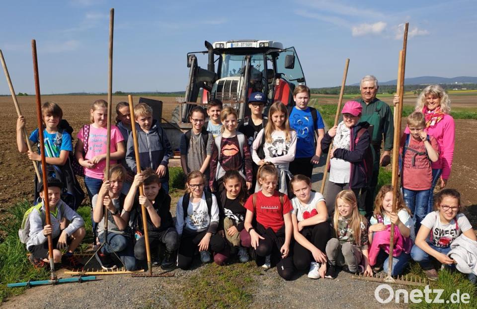 Von der Grundschule aus wanderten die Mädchen und Buben der Klasse 4a mit Klassenlehrer Markus Männer zu einem Feld bei Großensterz, wo sie von Landwirt Theo Dietz und dessen Sohn Johannes erwartet wurden. Mit dabei war auch Fachlehrerin Cornelia Rieß, die eine Beteiligung der Grundschule an der von der Stadt Mitterteich und hiesigen Landwirten im März initiierten Blühflächen-Aktion veranlasst hat.