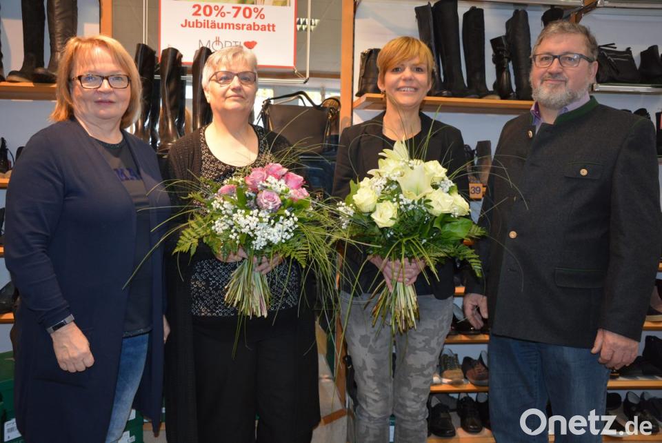 Seit 44 Jahren ist Renate Kellnerals Verkäuferin im Unternehmen. Sie gehört damit schon fast zum Inventar des Familienunternehmens. Ebenfalls schon viele Jahre dabei ist Martina Selch. Geschäftsführerin Christine Mörtl-Wurdack und ihr EhemannJosef Wurdackdankten für diese ganz außergewöhnliche Treue. Sie überreichten einen Blumengruß und ein Geldgeschenk.