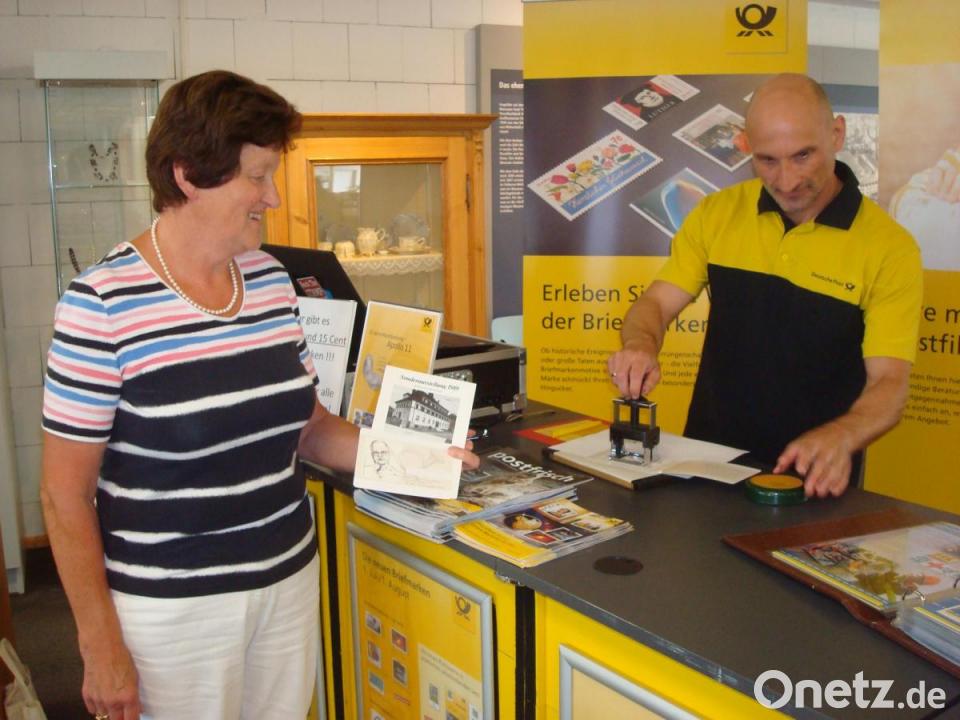 Zur Ausstellung "Die Post vor 100 Jahren und heute" hatte die Deutsche Post ein "Sonderpostamt" eingerichtet. Das Erlebnis-Briefmarken-Team des Unternehmens präsentierte einen Poststempel mit dem Konterfei des Mitterteicher Ehrenbürgers und ehemaligen Reichspostministers, der vor 155 Jahren geboren wurde. Außerdem hatte Postbeamter Jörg Günther an seinem mobilen Schalter viele philatelistische Schmankerl wie Sonderbriefmarken und natürlich ganz aktuelle Marken im Angebot. So gab es eine Sondermarke anlässlich der ersten Mondlandung vor 50 Jahren. Viele Besucher brachten ihre Post mit, die selbstverständlich mit dem Sonderstempel versehen wurde. Wer keine Briefmarken zur Hand hatte, konnte welche erwerben.