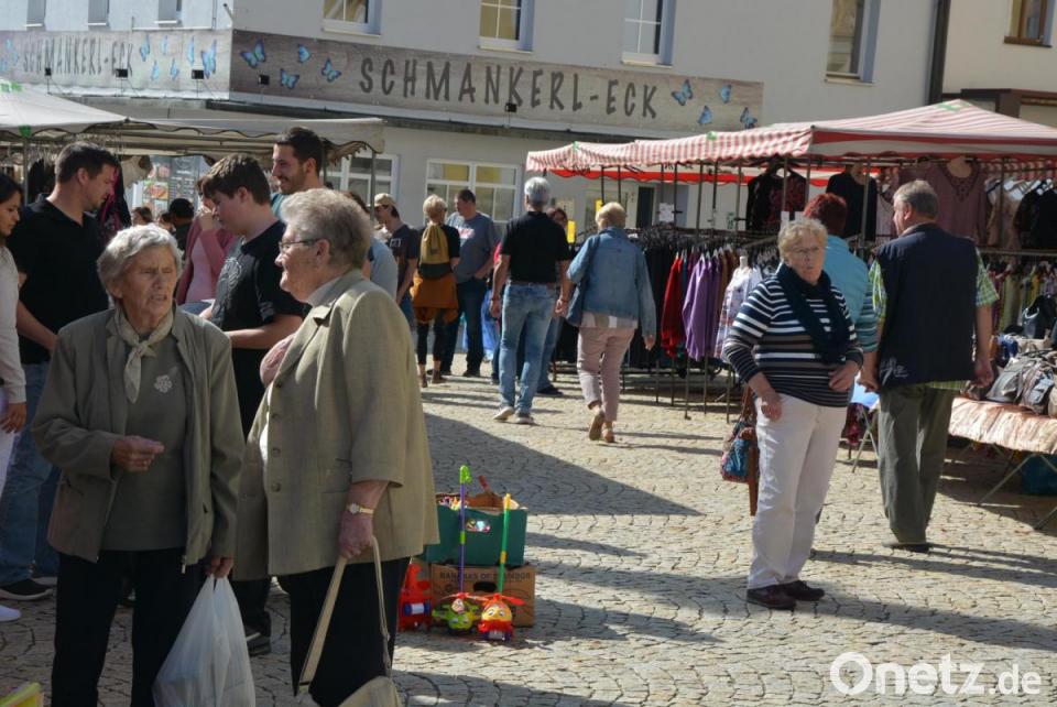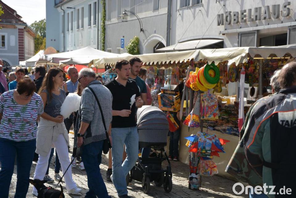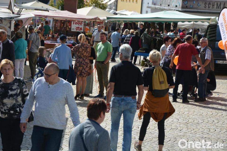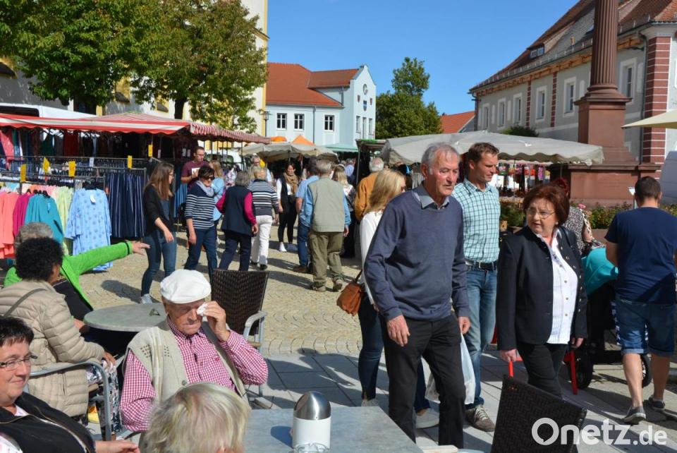 Auf dem Kirchplatz und am Oberen Markt hatten rund 25 Fieranten ihre Stände aufgebaut. Ein umfangreiches Sortiment wartete auf Käufer, die Auswahl reichte von Kleidung über Pflanzen bis hin zu Süßigkeiten. Den Bummel durch die Budenstadt nutzten viele auch zu einem Schwätzchen mit Bekannten, die sie schon lange nicht mehr gesehen hatten. Viele machten es sich auch im Außensitzbereich der Eisdiele bequem und genossen die warme Herbstsonne. Geöffnet hatten auch die Fachgeschäfte in der Innenstadt, die ebenfalls Anziehungspunkte für viele Besucher waren.