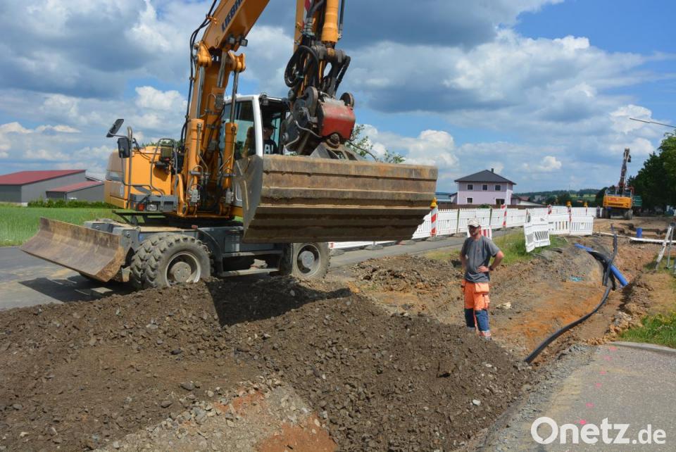 Derzeit werden am Mitterteicher Ortsrand die Hausanschlüsse erstellt, entlang der Kreisstraße wird für die Leitungsverlegung zunächst der Humus entfernt. Im weiteren Verlauf der Arbeiten wird die Leitung unter der Wondreb verlegt, ehe die Kreisstraße gekreuzt wird. Diese Unterführung wurde bereits hergestellt. In den kommenden Wochen wird es durch den Leitungsbau auch in Leonberg vorübergehend zu Beeinträchtigungen kommen. Bauleiter Stefan Männer ist zuversichtlich, mögliche Probleme in enger Absprache mit den Anliegern lösen zu können.