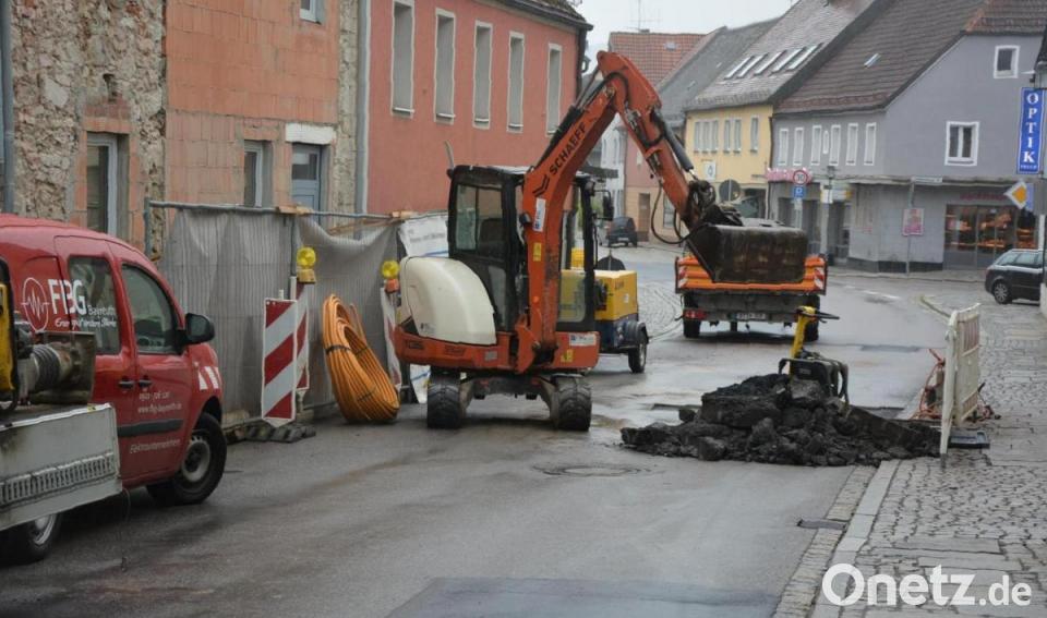 Straßenbauarbeiten starteten in dieser Woche an zwei Stellen im Ortskern. Zur Verlegung einer neuen Gasleitung im Zusammenhang mit der Sanierung des früheren Buchka-Hauses in der Vorstadt musste die Ortsdurchfahrt ab Mittwoch komplett gesperrt werden. Angesetzt worden waren für die Maßnahme des zuständigen Energieversorgers zwei Arbeitstage, wie es vonseiten des städtischen Bauamts hieß. Bürgermeister Stefan Grillmeier informierte am Donnerstagvormittag auf Nachfrage von Oberpfalz-Medien, dass der Verkehr auf der Ortsdurchfahrt spätestens ab Freitag wieder ungehindert rollen soll.