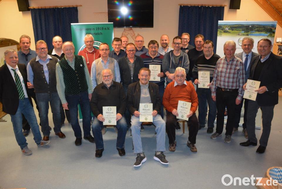 Seit 60 Jahren im Verein sind Franz Achatz, Reinhold Dümler, Fritz Fuchs, Hermann Gold, Josef Hermann, Albert Landstorfer, Günter Neumann, Engelbert Ott, Willi Panzer, Fritz Seebach, Albert Weiß und Karl Wölfl.
