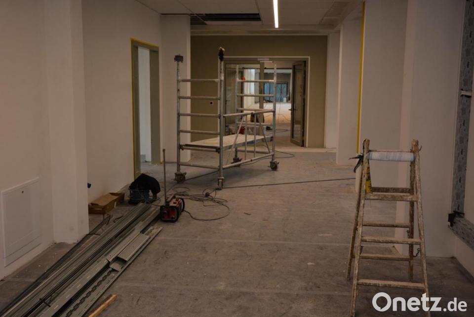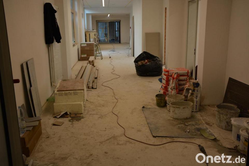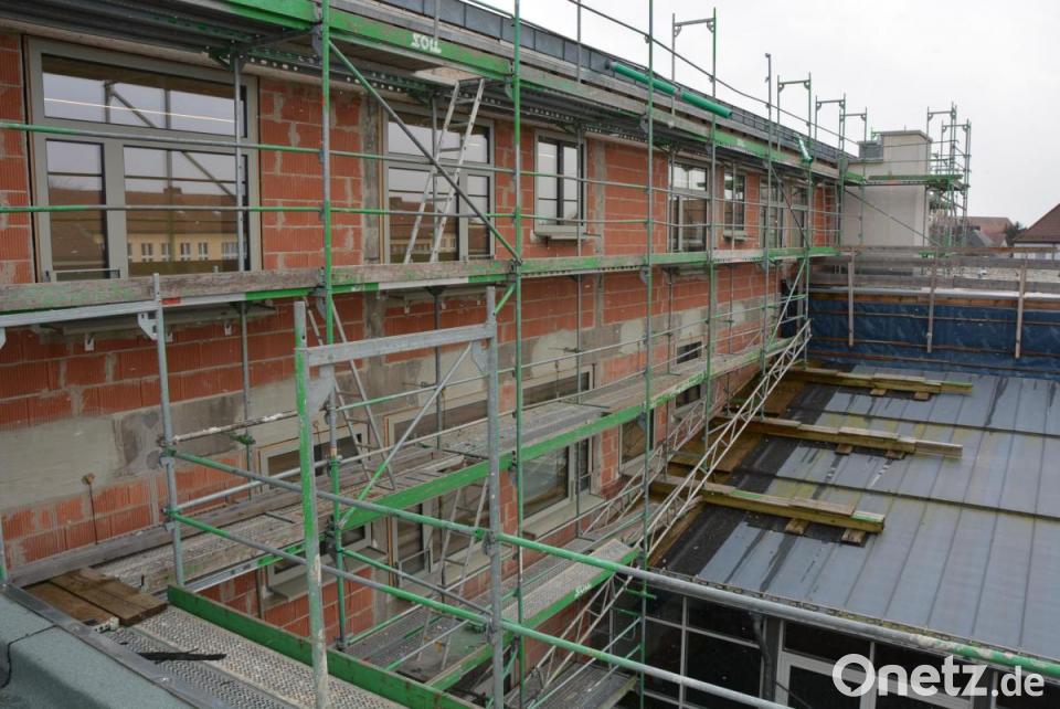 Beim Rundgang wurde klar, dass es bis zum Abschluss der Baumaßnahme zu Beginn der Osterferien noch viel Arbeit gibt. Für den Umzug sind zwei Wochen angesetzt. Bis dahin müssen die Sanitärräume fertig gefliest, der Fußboden eingebaut und viele Restarbeiten erledigt sein. In dieser Woche soll die erste Küche eingebaut werden. Vom TÜV abgenommen wurde mittlerweile der Aufzug, der für die Barrierefreiheit sorgt. Planer und Bauleiter sind aber fest entschlossen, den Bauzeitenplan einzuhalten. Noch immer nicht in Angriff genommen wurde die Außenfassade. "Ich brauche dazu beständig mindestens fünf Grad plus, erst dann kann ich im Freien arbeiten", sagte dazu Bauleiter Mirko Bertl. "Wenn die Temperaturen steigen, dann fangen wir umgehend an." Bezüglich der Kostenprognose zeigten sich die Verantwortlichen optimistisch, dass die bisher genannten Kosten in Höhe von 9,8 Millionen eingehalten werden. Details dazu gab es nicht. Im Anschluss zog sich die Delegation ins Rathaus zurück.