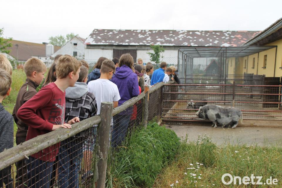 Ohne Berührungsängste gingen die meisten Schüler auf Esel, Kühe, Schweine, Ziegen, Pferde oder Hasen zu. Es wurde gestreichelt, gefüttert und gestaunt. Besonderes Interesse weckten die Stabheuschrecken. Erklärungen und Hilfestellung des Personals gab es noch zu den gängigsten Getreidesorten, zu den Hufformen der Tiere oder zum Selbstversuch beim Melken. Unterschiedliche Tierhaare konnte jeder im Mikroskop betrachten.