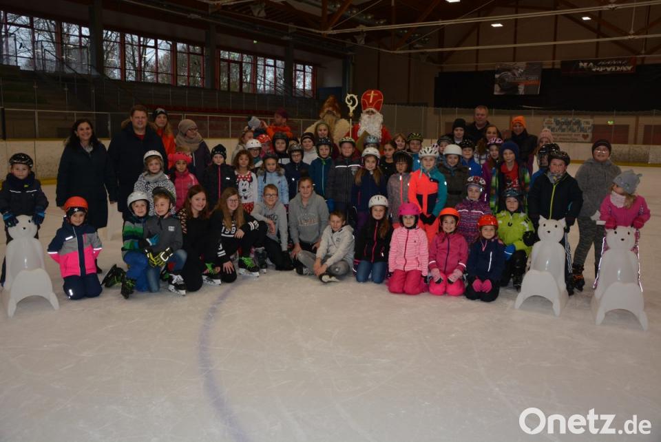Mächtig was los war am Freitagnachmittag in der Mitterteicher Eissporthalle. Rund 140 Besucher, darunter ein Großteil Kinder, wurden im weiten Oval gezählt. Höhepunkt war der Besuch von St. Nikolaus und Knecht Ruprecht, gestellt vom Mitterteicher Burschenverein. Das Duo drehte gemeinsam mit den Kindern ein paar Runden, ehe es in die Mitte der Eishalle einlud. Dort erzählte St. Nikolaus eine Adventsgeschichte, bevor die Kinder mit einer Trink-Schokolade beschert wurden. Danach verschwand St. Nikolaus wieder, so schnell wie er gekommen war. Eishallen-Managerin Astrid Häring und zweiter Bürgermeister Stefan Grillmeier zeigten sich vom Besuch begeistert. Gemeinsam wünschten sie den Kindern viele schöne Stunden in der Eishalle, insbesondere jetzt in der Advents- und Weihnachtszeit.