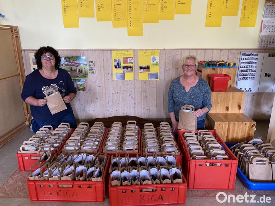 Diese Tasche enthält themenbezogen Material zum Basteln, außerdem Lieder, Reime, Ausmalbilder und vieles mehr. "Dieses Angebot wird von den Eltern gerne angenommen", berichten die Erzieherinnen.