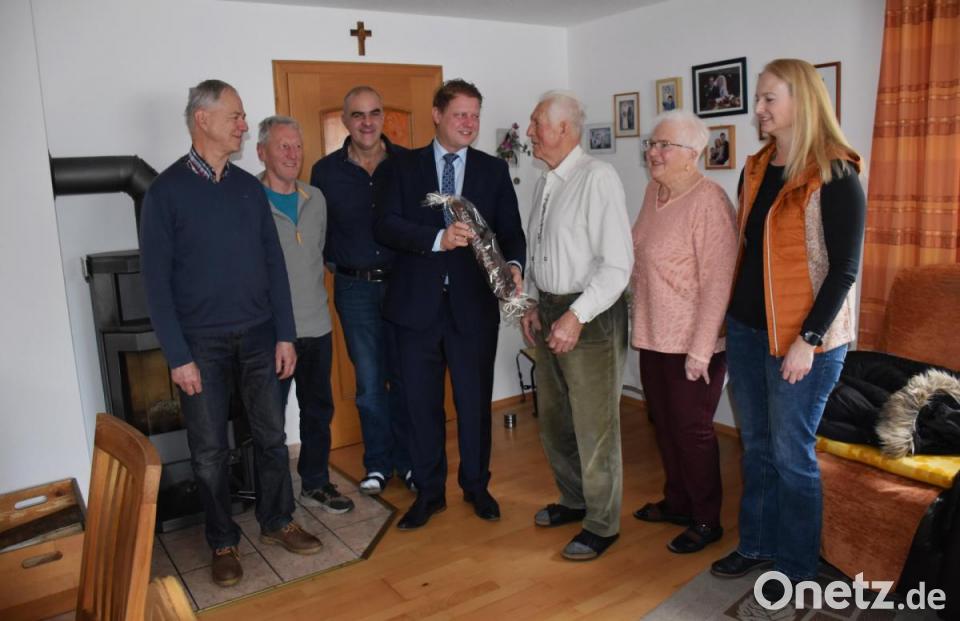 "Bleib gesund!", hieß es im Zuge von Glückwünschen von vielen Gratulanten, die Fritz Gründl am Jubeltag empfing. Bürgermeister Stefan Grillmeier war ebenso vor Ort wie eine Delegation der Siedlergemeinschaft mit Horst Robl, Peter Meyer und Anja Götz. Ehefrau Hannelore Gründl (76) hatte den Geburtstagstisch für die Gäste hübsch vorbereitet. Nicht nur Kaffee und Kuchen standen bereit, sondern auch Weißwürste mit Brezen.