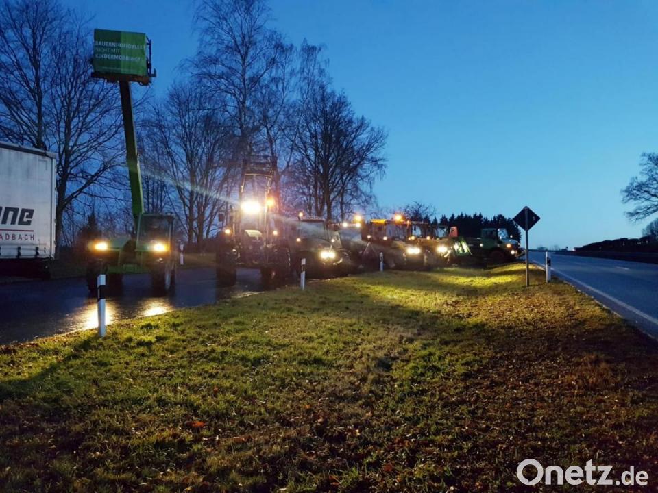 Bauern aus dem Raum Mitterteich und Wiesau machten sich auf den Weg und positionierten sich bei der Anschlussstelle Wiesau über der A 93. Landwirte aus dem Raum Lengenfeld bei Waldershof trafen sich über der A 93 bei Lengenfeld. Eine halbe Stunde wurde auch auf dem Großparkplatz in Tirschenreuth mit Schleppern und deren maximal möglichen Beleuchtung Aufmerksamkeit erzeugt. Auch Landwirte aus dem Raum Wildenreuth machten mit. Sie positionierten sich an der B 22 auf einem Parkplatz Nähe Wildenreuth.