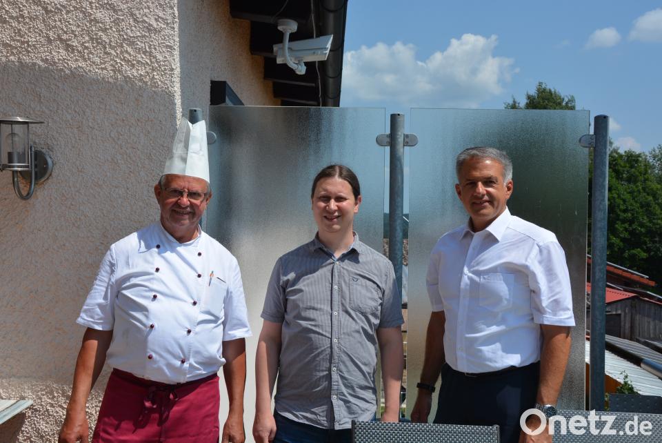 Bürgermeister Roland Grillmeier und Breitbandpate Christian Pößl von der Stadtverwaltung haben jetzt bei einem Besuch in Großbüchlberg die Webcam offiziell vorgestellt. Ihr Dank galt Petersklausen-Wirt Gerhard Lang, an dessen Anwesen die Kamera montiert ist. Sie liefert rund um die Uhr ständig neue Bilder von einer traumhaften Aussicht aufs Stiftland. Damit sei ein langjähriger Wunsch der Bürger erfüllt worden, wusste Bürgermeister Roland Grillmeier und sprach von einem weiteren Service - sowohl für Einheimische als auch für Touristen und Gäste.