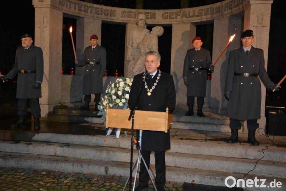 In Mitterteich erinnerte Bürgermeister Roland Grillmeier daran, dass es derzeit über 60 schreckliche Kriege gebe, unter denen auch die Zivilbevölkerung leide. "Wir müssen Kriegstreibern Versöhnung entgegensetzen, auch wenn dies oft mühsam erscheint." Der Bürgermeister forderte dazu auf, die Saat des Hasses nicht aufgehen zu lassen. Stadtpfarrer Anton Witt forderte zum Gebet für diese Menschen auf, damit sie erkennen, "dass sie sich selber und den anderen Menschen das Leben zur Hölle machen".