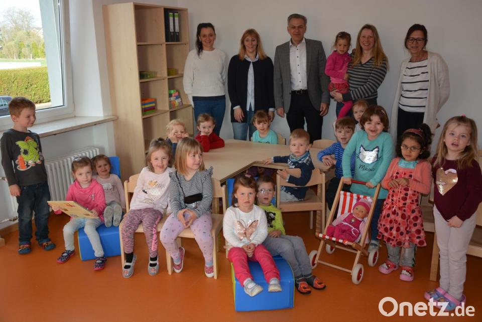 Gruppenleiterin Korina Brenk, ihre Kolleginnen und die Kinder haben die neuen Räumlichkeiten am Dienstag mit Bürgermeister Roland Grillmeier besichtigt. Neben dem hellen Gruppenraum gibt es einen Nebenraum, in dem auch gekocht werden kann. Roland Grillmeier berichtete von Kosten in Höhe von rund 130 000 Euro. "Investitionen in die Zukunft der Kinder sind gut angelegtes Geld", sagte der Bürgermeister. Leider hätten sich die Bauarbeiten etwas verzögert, nicht zuletzt wegen der Erfüllung neuester Brandschutzauflagen. Nach halbjähriger Bauzeit sind jetzt nur noch wenige Restarbeiten durchzuführen. Es fehlen noch die Beleuchtung, Gardinen und Teile der Inneneinrichtung. Den Kindern gefiel der neue Raum gleich so gut, dass sie gar nicht mehr gehen wollten.