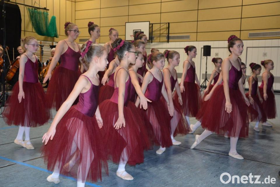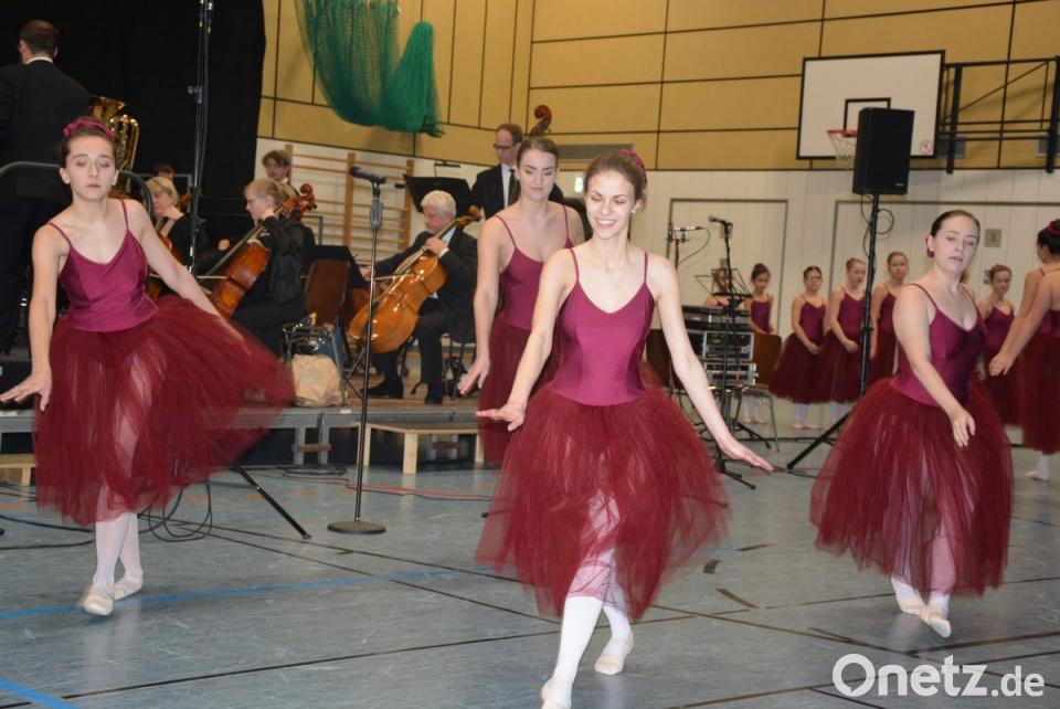 Es folgte der Ballettblock, gestaltet von insgesamt 25 Tänzerinnen im Alter zwischen 9 und 19 Jahren. Zur der bekannten Musik von Pjotr Iljitsch Tschaikowski aus "Schwanensee", herrlich gespielt vom Orchester, zeigten die Mädchen ihr Können. Ein Quartett ganz in Weiß brachte anschließend den "Tanz der kleinen Schwäne" auf die Bühne. Feinfühlig ließ das Orchester dazu die Musik erklingen. Abgeschlossen wurde der erste Teil des Programms mit einem Csárdás. Vier Tänzerinnen schlüpften dazu in entsprechende Kostüme und brachten ungarische Lebensfreude zum Ausdruck.