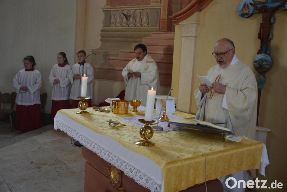 Nach der coronabedingten Pause im vergangenen Jahr konnte die Jubiläumswallfahrt nun stattfinden. Rund 50 Mitterteicher hatten sich mit einem Omnibus und Privatfahrzeugen auf den Weg gemacht. Nach einem gemeinsamen Rosenkranzgebet feierten Stadtpfarrer Anton Witt und Kaplan Daniel Schmid einen Dankgottesdienst in der schmucken Wallfahrtskirche. Der Kirchenchor der Pfarrei St. Jakob unter der Leitung von Matthias Schraml umrahmte die Messe.