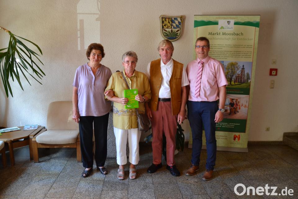 Die treuen Urlaubsgäste Ursula und Reinhold Räsch aus Dortmund verbringen ihren 30. Aufenthalt in der Ferienwohnung beim Kellerbauern in Heumaden. 1990 haben sie vom Ferienort Moosbach in einer Zeitschrift gelesen, erzählte Reinhold Räsch. Im September 1991 machten sie sich in den Urlaub nach Moosbach auf. Bei Gertraud und Ludwig Kick fühlen sie sich Zuhause, sagte Ursula Räsch. Es ist der 13. Aufenthalt bei ihnen. Gerne unternehmen sie auch kleine Wanderungen. Bürgermeister Hermann Ach empfing das Ehepaar Räsch mit Gastgeberin Gertraud Kick im Rathaus. Er dankte ihnen für diese langjährige und große Treue und überreichte ihnen als Dankeschön ein Moosbacher Kochbuch Band III mit vielen leckeren Rezepten.