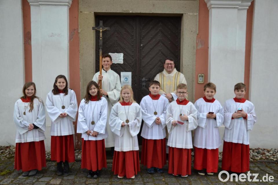 Zum Christkönigsfest nahm Pfarrer Udo Klösel beim Gottesdienst in der Wieskirche acht neue Ministranten auf. Zum Ministrantendienst haben sich aus der Pfarrei Alexandra Stahl, Valentina Kaiser, Fiona Zimmermann, Lea Kleber, Luis Selch, David Hofmeister, Jakob Wittmann und Lukas Roth bereiterklärt. In den vergangenen Monaten wurden sie sich auf ihren Dienst am Altar und in der Pfarrgemeinde vorbereitet, führte der Geistliche aus. Der Geistliche segnete neuen Ministranten . „Wir freuen uns, dass ihr euch für diesen wichtigen Dienst in unserer Pfarrgemeinde bereiterklärt habt, sagte Pfarrer Klösel.