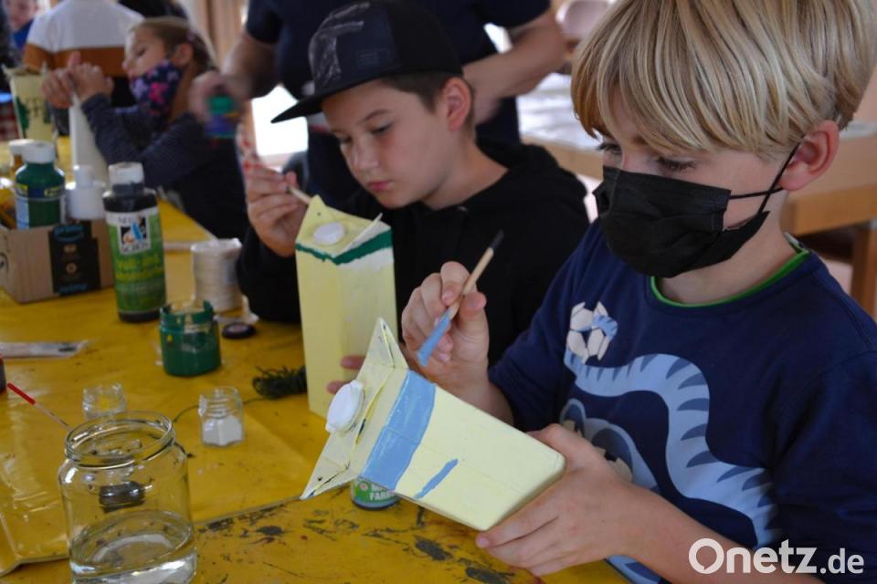 „Upcycling“, hieß das Zauberwort beim Kinder-Spaß-Programm der Gemeinde beim Frauenbund. Es wurden Vogelfutterhäuser aus Tetrapacks gebastelt. Drei verschiedene Arten wurden den Kindern vorgestellt. Nach Wunsch wurden sie in Form gebracht. Mit viel Freude und Begeisterung gingen die kleinen Künstler ans Werk. Manche Kinder bemalten sie zuerst. Verziert oder beklebt wurden sie je nach Geschmack mit Steinen, Blättern, Blumen oder Getreide. Schmetterlinge, Käfer und Igel wurde aus Papier ausgeschnitten bemalt und damit die Häuschen weiter geschmückt. Am Schluss wurden die Vogelfutterhäuser mit einem Aufhänger versehen. Unterstützt wurden die Mädchen und Buben von der Vorsitzenden Angela Striegl, ihrer Tochter Sonja, der Erzieherin Sonja Dirscherl und Christa Gissibl. Wegen des unbeständigen Wetters mussten im Pfarrheim gebastelt werden.