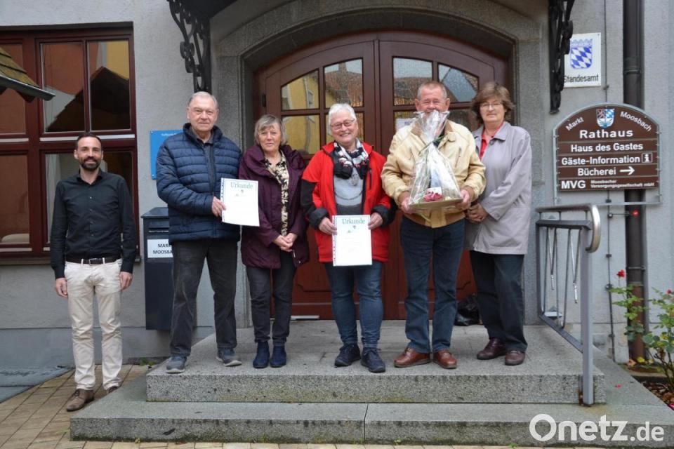 Meist kurzfristig buchen Hildegard und Josef Danieluk aus Lauf ihren Urlaub in Moosbach im „Haus am Ozon-Hallenbad“. Für den 20. Aufenthalt wurden sie nun von Bürgermeister Armin Bulenda ins Rathaus eingeladen. Die Gäste kommen zum Auskuren auf kurzen Wegen. Hallenbad, Kurpark und Masseur liegen praktisch in der Nachbarschaft. Begleitet wurden sie zur Ehrung von Gastgeberin Maria Steinberger.