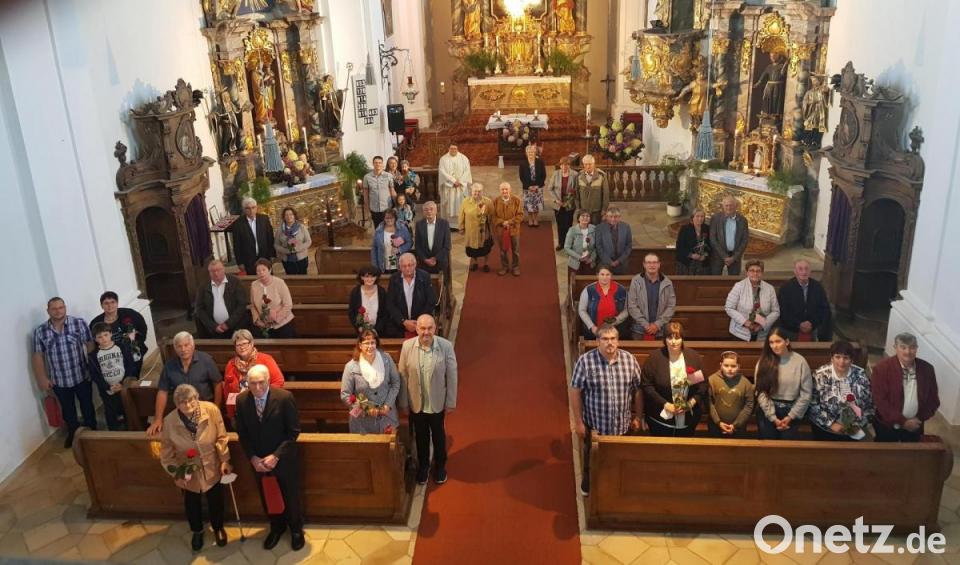 „Sie, liebe Ehejubilare, haben damals offensichtlich die richtige Wahl getroffen, als sie sich füreinander entschieden und das Ja-Wort einander zugesagt haben", sagte Klösel. In ihren gemeinsamen Ehejahren hätten sie sicherlich so manches Mal den Stürmen des Lebens getrotzt und widerstanden. "Vor allem aber, liebt einander, denn die Liebe ist das Band, das alles zusammenhält und vollkommen macht", bat der Geistliche. Es möge ihnen noch viele glückliche und gesunde Jahre zusammen und im Kreise ihrer Familie vergönnt sein. Auch die beiden Jubilare aus Burgtreswitz bzw. Etzgersrieth die jeweils ihr 60. Ehejubiläen hätten feiern können, konnten wegen angeschlagener Gesundheit nicht teilnehmen. Von der Pfarrei erhielten die Frauen eine Rose und die Männer ein flüssiges Geschenk.