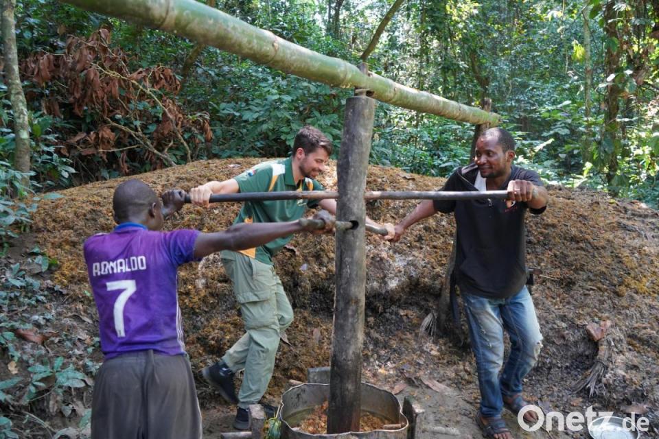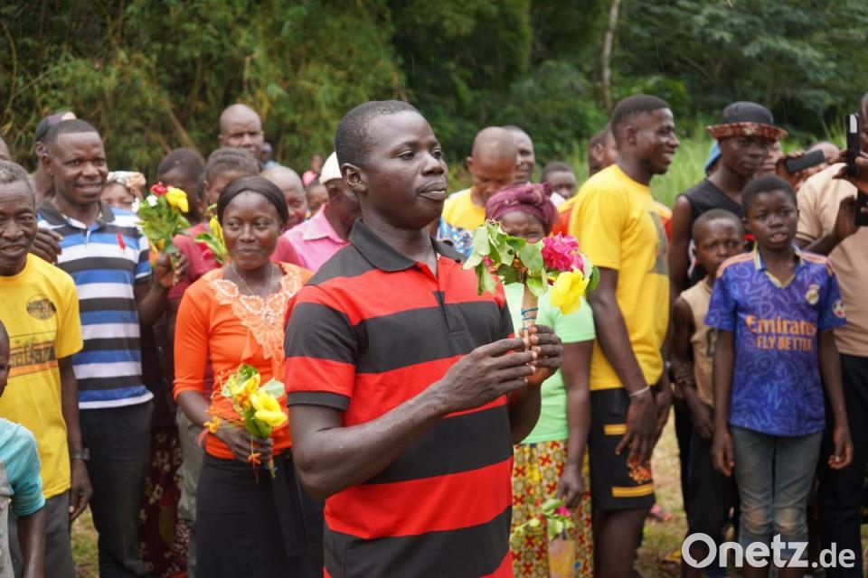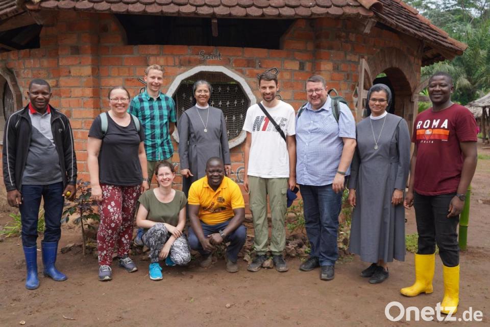 Dort wartete der aus der Pfarrei Moosbach stammende und seit 52 Jahren im Kongo lebende Augustiner und Missionar Pater Ferdinand Bodensteiner zusammen mit vielen aufgeregten Einheimischen auf den Besuch aus Deutschland. Stürmisch und mit Musik und Tanz wurden die Gäste begrüßt. Ein junger Mann hatte sogar eine Begrüßungsrede in deutscher Sprache eingeübt und alle sangen das Lied „Horch, was kommt von draußen rein“, umgedichtet von Pater Ferdinand. Dann ging es mit dem von der Pfarrei Moosbach vor Jahren gespendeten Unimog in das rund 10 Kilometer entfernte Ndendule, wo sie die nächsten vier Wochen leben und arbeiten würden – ohne fließendes Wasser, ohne Strom, ohne Internet, Radio, Fernsehen, umgeben von bitterer Armut und Krankheit, umgeben aber auch von einer wunderbaren Landschaft. Und eingebunden in eine dörfliche Gemeinschaft mit Menschen, deren Fröhlichkeit, Offenheit und Gastfreundschaft trotz größter Armut demütig werden lässt.