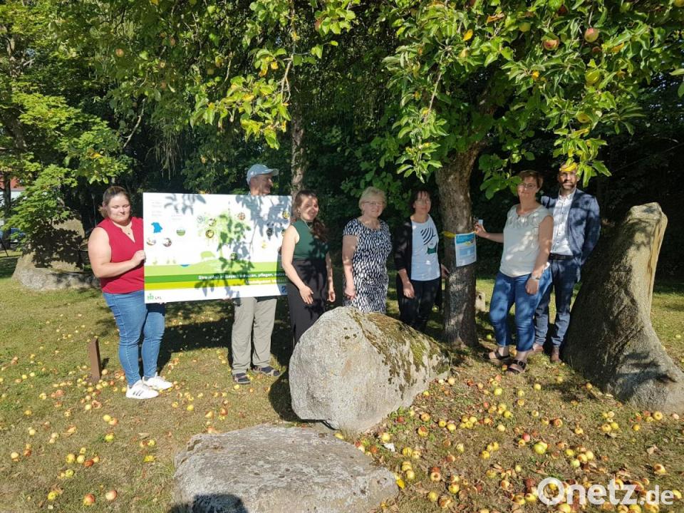 Bürgermeister Bulenda gab die Gemeindebäume mit dem gelben Band offiziell bekannt. Dazu zählen zwei Apfelbäume in der Rosenstraße, je ein Apfelbaum am Eingang zum Generationenpark, am Feuerwehrhaus und am Wohnmobilstellplatz sowie zwei Apfelbäume am Spielplatz in Etzgersrieth sowie mehrere Apfelbäume und ein Birnbaum in der Streuobstwiese bei Burgschleif. Maria Müller freute sich über die gekennzeichneten Bäume. Es gehe nicht an, dass überall wertvolles Obst herumliege. Man müsse nun aber noch mehr auf die Pflege der Bäume achten und die Bürger über den Wert des Obstes aufklären.