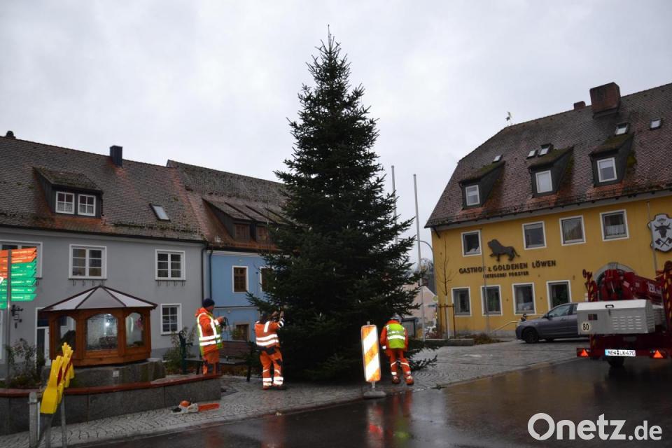 Zunächst musste der Baum von den Bediensteten abgesägt werden. Mit dem Kran wurde er auf den gemeindlichen Lastwagen geladen und dann zum Marktplatz transportiert. In den vorbereiteten Schacht am Marktplatz wurde der Christbaum per Autokran gehievt und verankert. Am Dienstag wurden die Beleuchtungsketten angebracht. In der Advents- und Weihnachtszeit wird der Baum leuchten und weihnachtliches Flair verbreiten. Daneben steht auf dem Marktbrunnen die Krippe des Frauenbundes, die vor allem für die Kinder stets ein Anziehungspunkt ist. Die ehemalige Vorsitzende Monika Schnupfhagn wird sie, wie seit vielen Jahren, dekorieren.