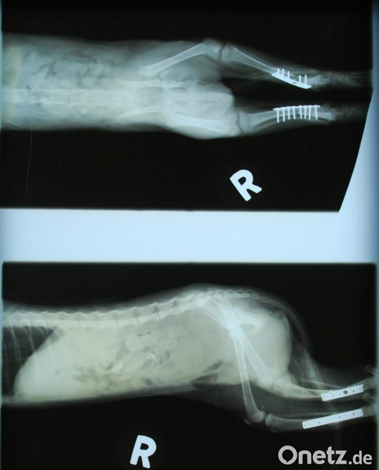 Das arme Tier wurde durch die Wucht regelrecht aus dem Motorraum geschleudert. Die Diagnose fiel erschütternd aus: Beckenbruch, Bauchbruch, Oberschenkelhals-Fraktur und beide Unterschenkel gebrochen. Das etwa vier Monate alte Katzenbaby muss unvorstellbare Schmerzen gehabt haben. "Es hat jämmerlich geschrien", erinnert sich der Veterinär.