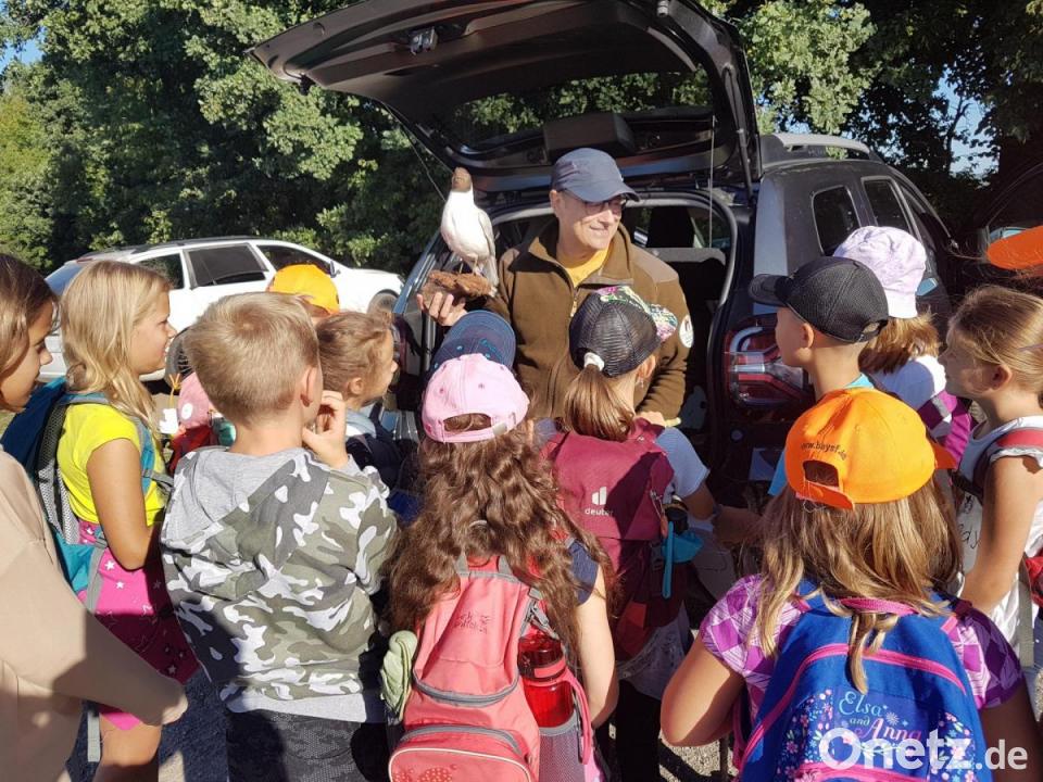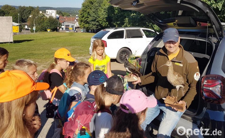 Die Mädchen und Buben durften sich in das Leben der Vögel versetzen. Mit Nestbau, Futtersuche und den Zug in den Süden zum Überwintern erfuhren sie Spannendes über die Lebensweise der Vögel. Großes Interesse zeigten die Kinder zu den vom Naturpark-Ranger mitgebrachten Präparaten eines Kiebitz, des Großen Brachvogels, des Eisvogels und der Lachmöwe.