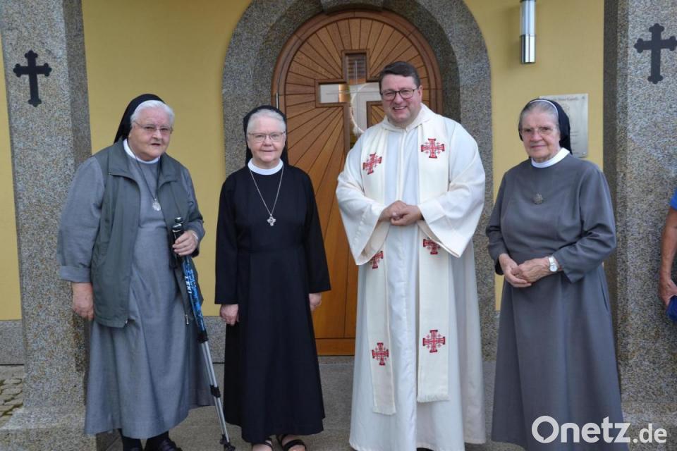 Pfarrer Udo Klösel konnte nach dem Gottesdienst in Gebhardsreuth die Mallesdorfer Klosterschwestern M. Angelina (Margaretha) Hummer mit ihrer Mitschwester M. Leopoldine Wandl sowie Schwester Angelika Summer begrüßen. Schwester Angelina, geborene Hummer, aus Ragenwies, verbringt zurzeit ihren Heimaturlaub mit ihrer Mitschwester bei Verwandten in Tröbes. Auch Schwester Angelika (Rita) Summer, von den Rita-Schwestern Würzburg, ist zum Heimaturlaub aus Racime/Wisconsin USA angereist. Sie ist seit 47 Jahren in den USA und derzeit dort in der Altenpastoral tätig. Schwester Summer wohnt in ihrem Elternhaus in Gebhardsreuth bei ihrer Schwester Angela und Schwager Max Striegl. Die Klosterschwestern freuen sich auf ein Wiedersehen mit Verwandten und Bekannten. Pfarrer Klösel wünschte ihnen einen schönen und erholsamen Aufenthalt in der Heimat.
