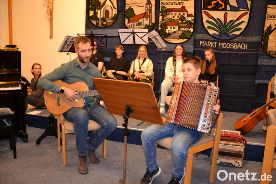 Den musikalischen Reigen eröffnete Julian Stefinger (Klavier) mit dem Scherzo in B-Dur von Franz Schubert. Das Gitarren-Ensemble brachte mit einem Polnischen Tanz sofort Stimmung in den Saal. Es folgten drei Klavierstücke, gespielt von Alina Teetenburg (Ungarischer Tanz von Richard Krentzlin), Pia Wildenauer (Das Tick-Tack der Mühle von Giuseppe Galuzzi) und Selina Seibert (Sonatine G-Dur von Ludwig van Beethoven). Paula Steger spielte mit dem Cello-Duo und Schülerinnen sowie der Lehrerin Ute Sommer den „Slide Waltz“ und das „Picknick an der Wolga“ von Gabriel Köppen. Es folgten fünf Klavierstücke nämlich das „Primavera“ von Ludevico Einaudi, gespielt von Viktoria Stefinger, das Stück von Beethoven „Für Elise“, gespielt von Sarah Kölbl; das „Majesty“ von Sven Voolstra, gespielt von Emma Hammerl; von Bon Jovi das „Livin on a Prayer“, gespielt von Helena Hager (Konzertflöte) sowie Wolfgang Ziegler (Klavier) und den ersten Satz der Mondscheinsonate von Beethoven, brachte Luzia Stefinger (Klavier) zu Gehör.