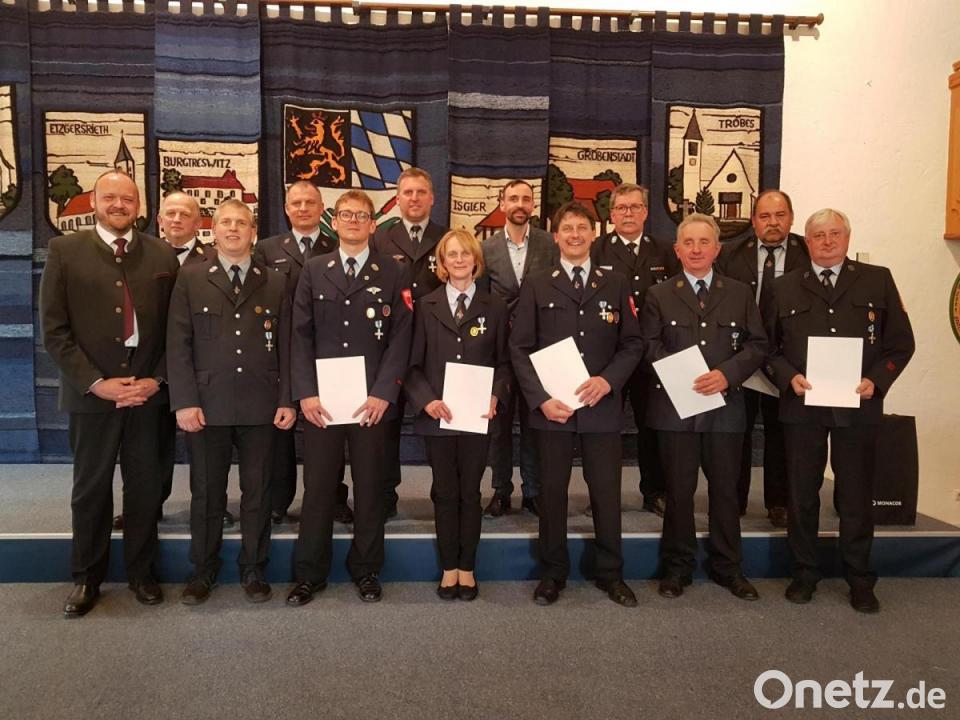 Im Namen des Freistaats Bayern zeichnete Landrat Andreas Meier im Rathaussaal 12 verdiente und aktive Feuerwehrleute für 25 sowie 40 Jahre Dienstzeit aus und überreichte Ehrenzeichen. Bürgermeister Armin Bulenda dankte den Feuerwehrleuten für ihren Einsatz im Dienste der Allgemeinheit. Landrat Meier, Bürgermeister Bulenda sowie Kreisbrandinspektor Martin Weig und Kreisbrandmeister Thomas Kleber überreichten an folgende Feuerwehrleute die Ehrenzeichen für 40 Jahre Dienstzeit: Von der Feuerwehr Burgtreswitz an Martin Kreuzer und von der Feuerwehr Tröbes an Gerhard Balk, Josef Eger, Josef Hofmeister und Robert Rappl. Für 25 Jahre Dienstzeit wurden ausgezeichnet: Christian Landgraf und Matthias Enslein (beide von der Feuerwehr Moosbach) sowie Christian Held, Matthias Zeitler, Daniela Zeitler, Andreas Landgraf und Andrea Hartinger (alle von der Feuerwehr Burgtreswitz).