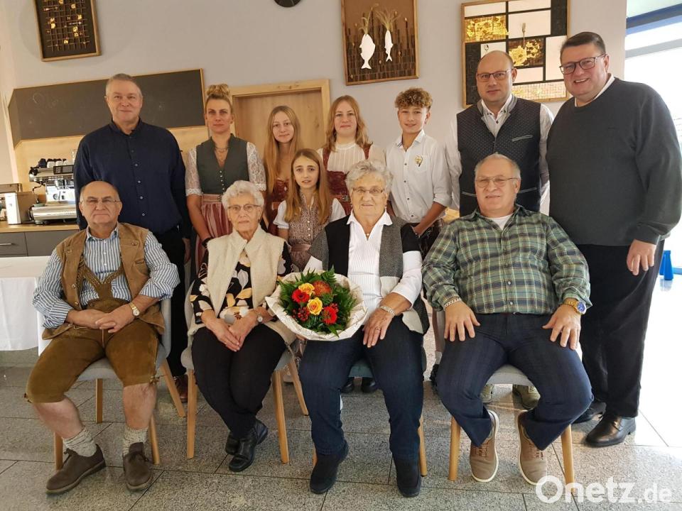 Die besten Glückwünsche überbrachten Pfarrer Udo Klösel und Dritter Bürgermeister Helmut Meindl. Als Mutter, Oma und Uroma ist Monika Grünbauer der Mittelpunkt der Familie. Das Alter sieht man der Jubilarin bei weitem nicht an. Die Wiege von Monika Grünbauer stand in Ziegelhütte bei Pfrentsch, wo sie mit zwei Schwestern und einem Bruder im elterlichen Bauernhof aufwuchs. Die Geschwister sind bereits verstorben. Schon von Kindesbeinen an half sie in der Landwirtschaft mit. In jungen Jahren arbeitete sie in der Hosenfabrik Hölzl in Vohenstrauß. 1960 heiratete sie den Maurer Josef Grünbauer aus Heumaden. Die beiden Söhne Anton und Georg gingen aus der Ehe hervor. Neben den Enkeln Matthias und Antonia sind ihre große Freude die Urenkel Magdalena, Christina, Leon und Amelie.