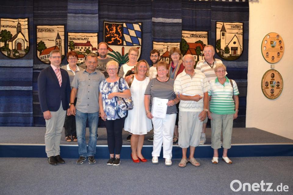 Das Ehepaar Renate und Burkhard Wilke aus Detmold gehört bereits zum Inventar des Café Eger. „Ihnen ist in Moosbach nichts mehr fremd, und sie haben hier ihre zweite Heimat“, meinten sowohl Bürgermeister Hermann Ach als auch Quartiergeberin Elisabeth Sichert vom Café Eger. Renate und Burkhard Wilke verbinden mit Moosbach viele schöne Erinnerungen. Solange es ihnen möglich ist, wollen sie Moosbach treu bleiben. Das Paar erhielt für seinen 55. Aufenthalt Gutschein und Urkunde. Das Ehepaar Susanne und Siegfried Kapp aus Sindelfingen ist ebenfalls im Café Eger untergebracht. Für den 10. Aufenthalt gab es die Broschüre "Naturparkführer". Auch das Ehepaar Käthe und Karl-Heinz Koch aus Bergisch-Gladbach erhielt eine Broschüre. Die beiden wohnen im Haus am Ozon-Hallenbad. Sandra und Oliver Burre aus Gütersloh schlafen in der Ferienwohnung Marga Braun in Grub und erhielten für ihren 15. Aufenthalt einen Bierkrug. Die Gastgeber begleiteten die Urlaubsgäste zur Ehrung.