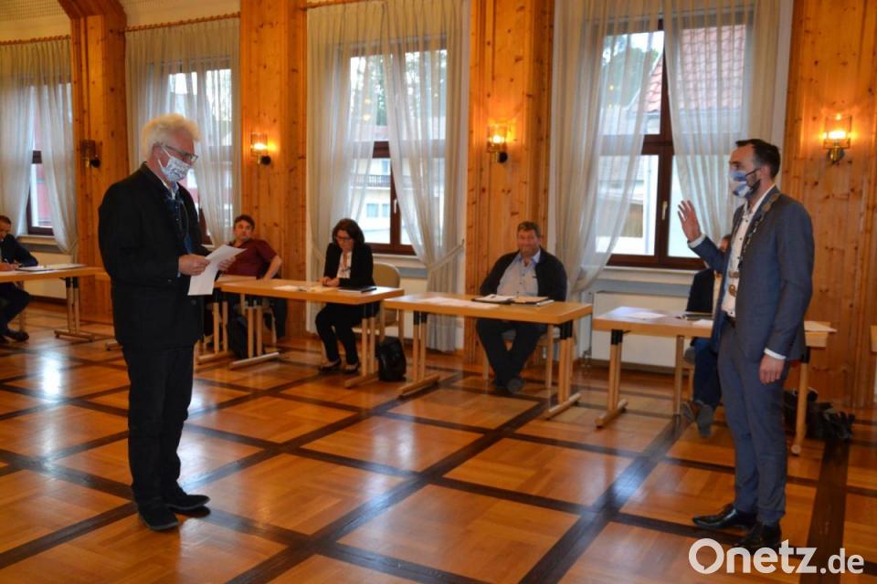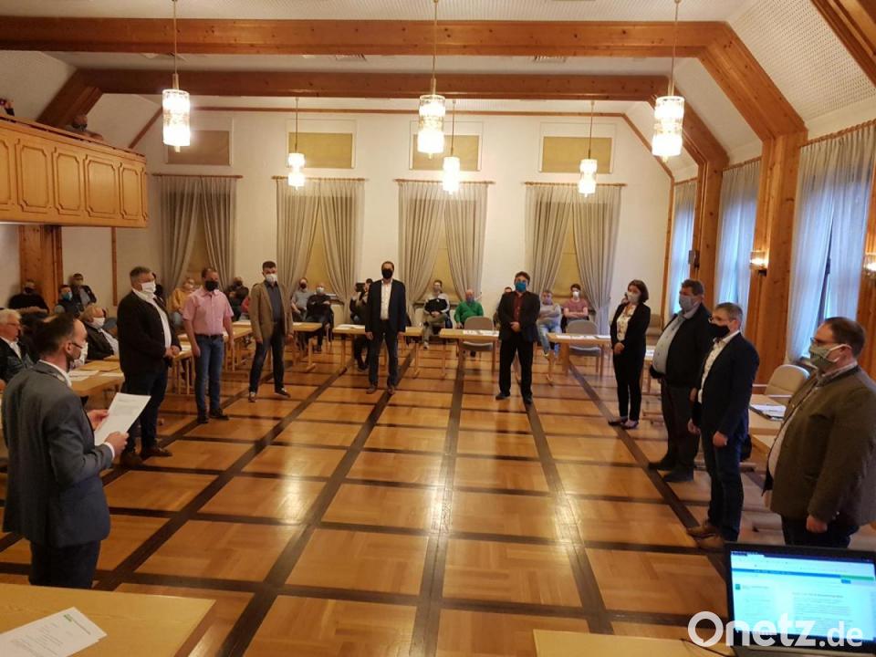 In der konstituierende Sitzung im Rathaussaal nahm das älteste Marktratsmitglied, Erhard Scheuerer, Bürgermeister Armin Bulenda den Amtseid ab. Bulenda erhielt großen Beifall. Die Sitzplätze für die Gremiumsmitglieder und die 25 Zuhörer waren der gegenwärtigen Situation entsprechend weiträumig platziert.